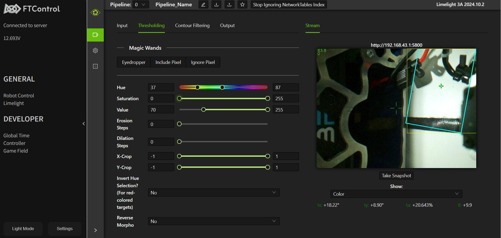 Using the Limelight tab inside Plugin's Settings or the Widgets you can preview the original Limelight3A Dashboard. You can also use port :5801 with the IP of your Robot Controller app.